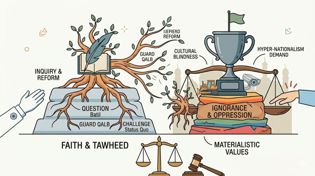 Summary The article asserts that the ability to raise questions is a fundamental, divinely sanctioned human trait, deeply embedded in the Quran and the Sunnah, designed to challenge ignorance and uphold Haqq (Truth and Justice). The author argues that contemporary Muslim youth must embrace eloquent questioning not as a passive exercise, but as a critical […]